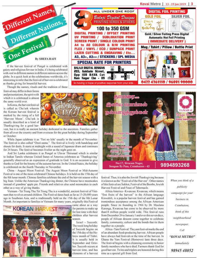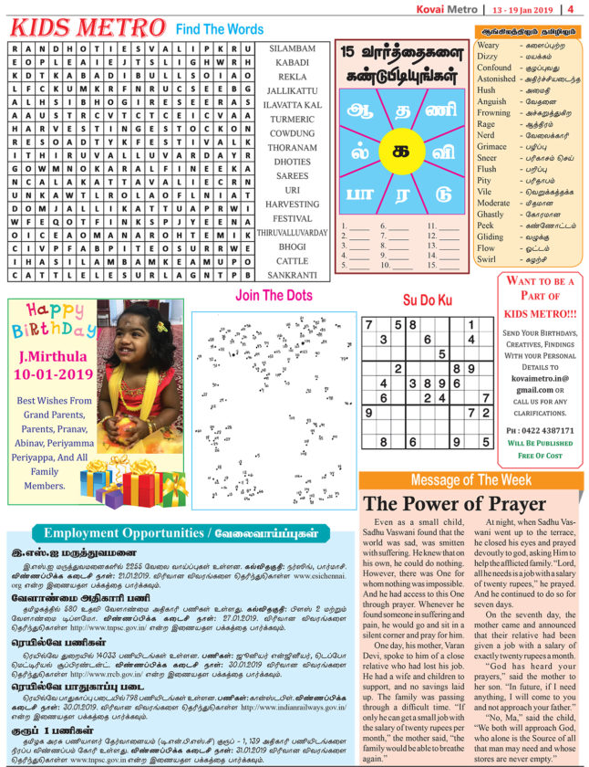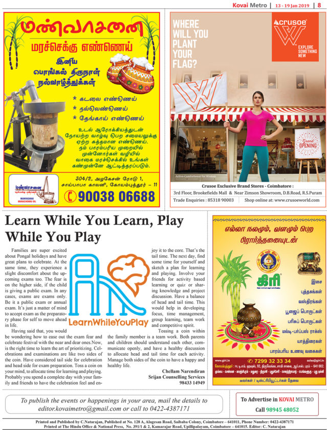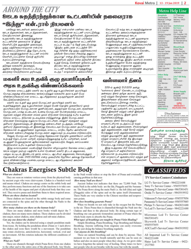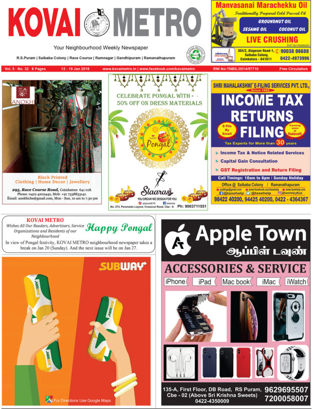 Vol 5 – Issue 32, KOVAI METRO, Neighbourhood Weekly Newspaper, Coimbatore January 13, 2019January 12, 2019 Kovai Metro