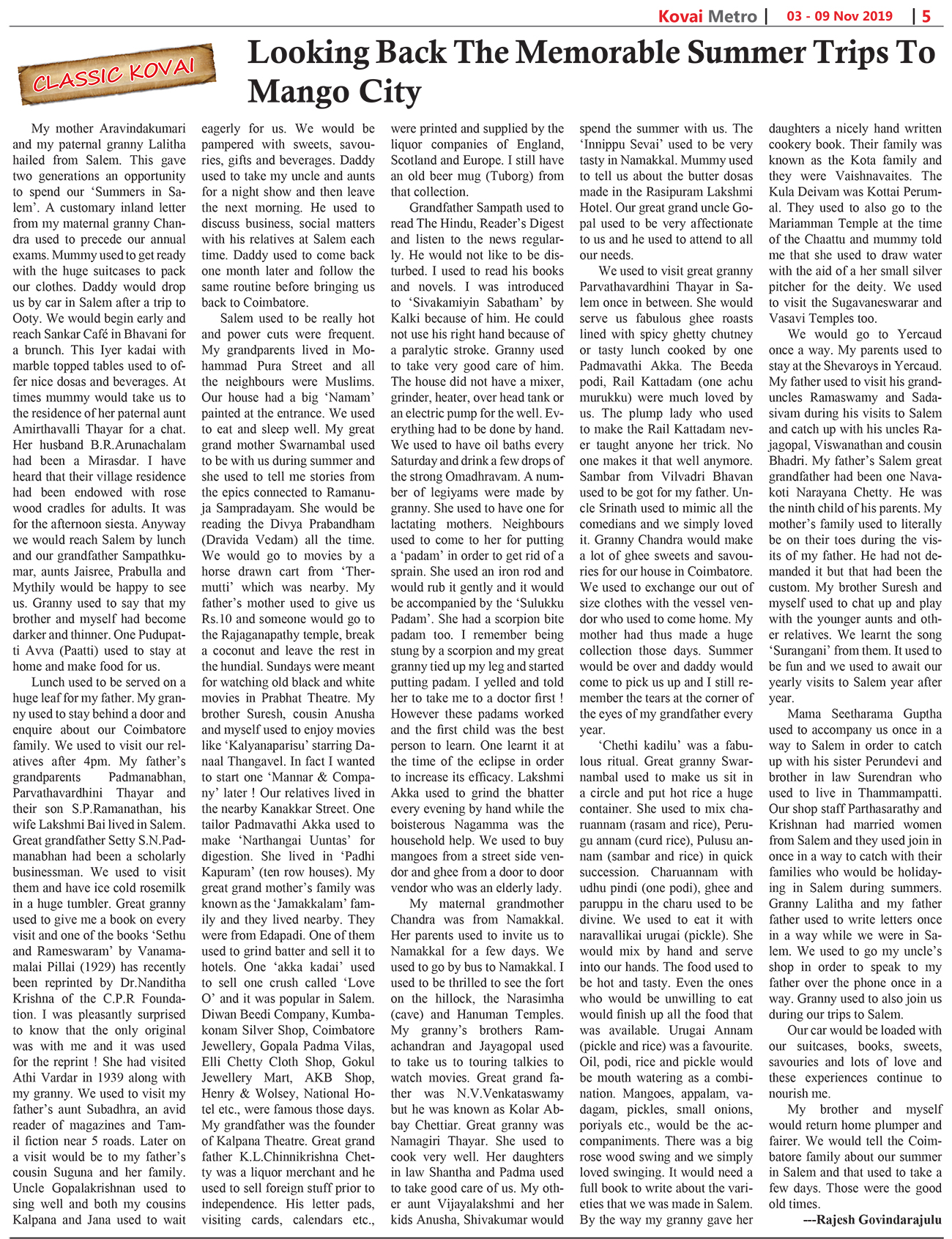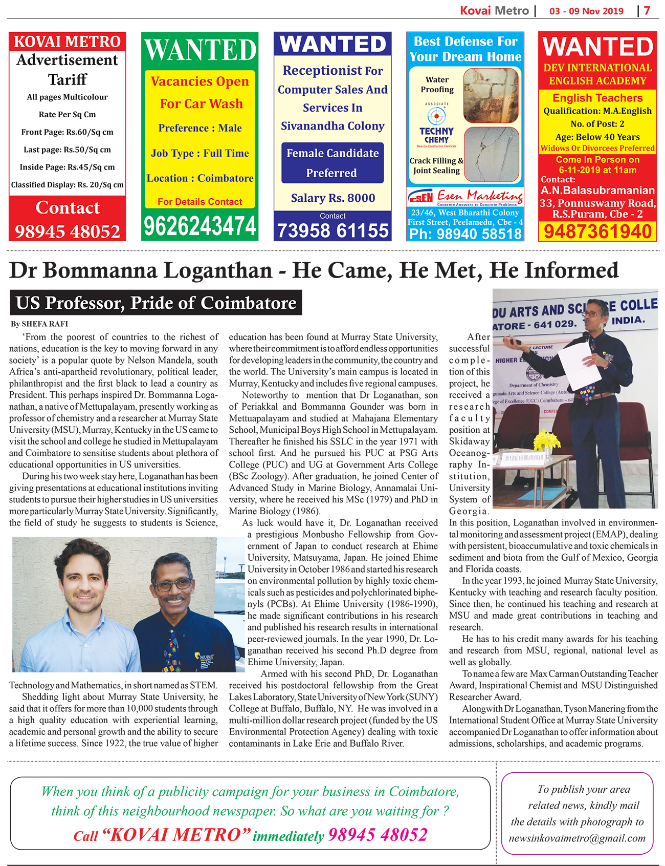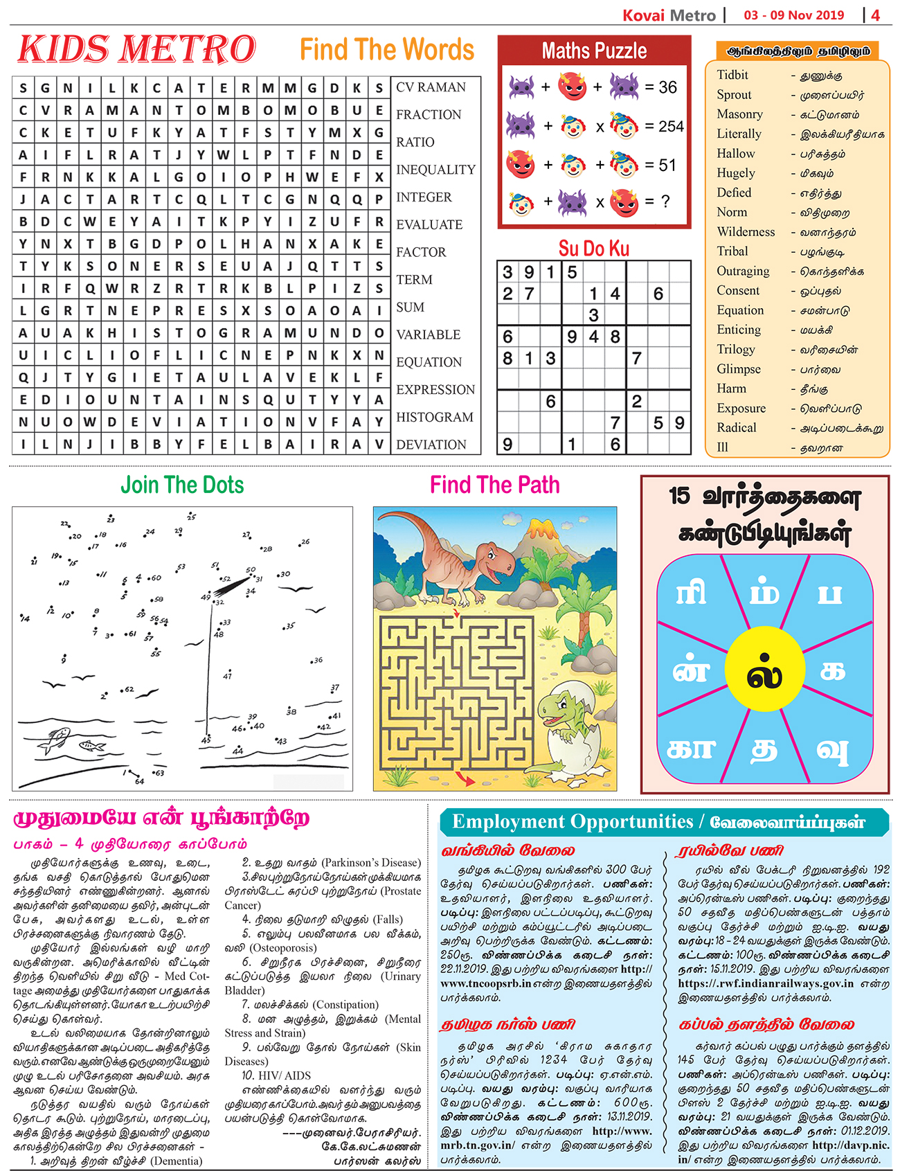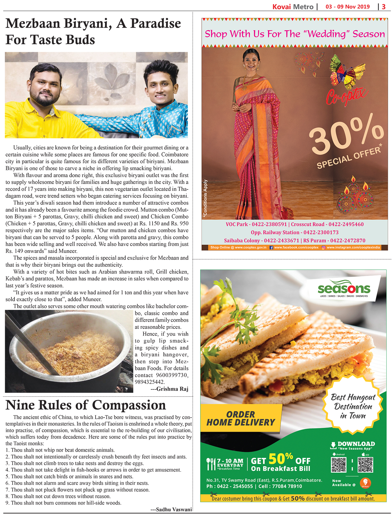 Vol 6 – Issue 23, KOVAI METRO, Neighbourhood Weekly Newspaper, Coimbatore November 6, 2019 Kovai Metro